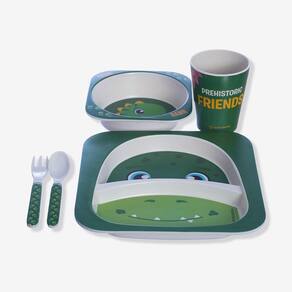 Especificações: Copo: 250ml Bowl: 350ml Prato: 21,2cm x 21,2cm Garfo/colher: 13cm Materiais: Fibra de bambu e melamina