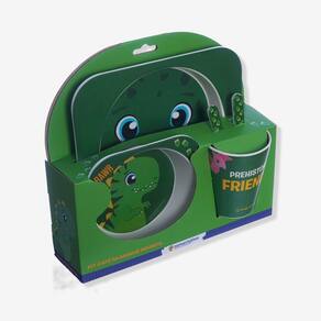 Kit Alimentação Infantil Dinossauro Zonacriativa Quer ajudar o seu filho se alimentar melhor, mas não sabe como? A gente te ajuda! Com esse kit as refeições ficam muito mais completas e diidas! É composto por um prato, um bowl, um copo e um garfo e colher! Não importa qual é a refeição, a companhia é garantida! O produto é importado, feito em fibra de bambu e melamina, possui detalhes incríveis que vão fazer você se apaixonar! Para te acompanhar no café, possui um bowl de 350ml para você encher de cereais e frutinhas! Para o almoço possui um prato, talheres e um copo de 250ml que garante aquele suquinho geladinho! Além de ser livre de BPA, esse é o kit perfeito para tornar a hora de comer do seu filho mais diida! Não importa se é no almoço, ou janta, esse kit acompanha seu ser humaninho em todas as aventuras!