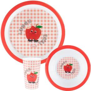 Contém: 1- Prato raso 1- Tigela 1- Copo Livres de BPA e ftalatos, os utensílios são leves , resistentes, e podem ir ao micro-ondas e freezer