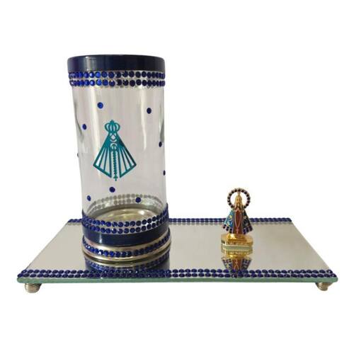 O Kit Altar Porta Vela e Escultura Nossa Senhora Aparecida da Bialluz é composto por um suporte de vela confeccionado em alumínio e vidro, uma linda escultura feita de resina e uma bandeja de vidro decorada artesanalmente que dá um charme para o Kit Altar. Escolha entre os modelos de Nossa Senhora Aparecida Manto ou Nossa Senhora Aparecida Coroa, basta selecionar qual modelo deseja nas opções disponíveis no anúncio : x000D