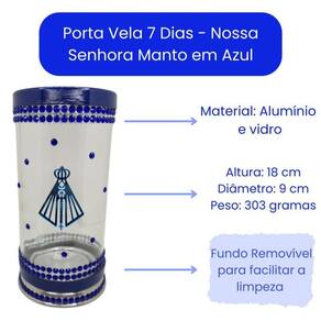O Kit Altar Porta Vela e Escultura Nossa Senhora Aparecida da Bialluz é composto por um suporte de vela confeccionado em alumínio e vidro, uma linda escultura feita de resina e uma bandeja de vidro decorada artesanalmente que dá um charme para o Kit Altar. Escolha entre os modelos de Nossa Senhora Aparecida Manto ou Nossa Senhora Aparecida Coroa, basta selecionar qual modelo deseja nas opções disponíveis no anúncio : x000D
