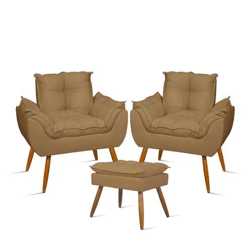 Transforme o seu ambiente com o Kit 02 Poltronas + 01 Puff Opala. Kit super multifuncional que une conforto, beleza e praticidade. Ideal para áreas de estar, cantinhos de leitura e até mesmo ambientes comerciais.