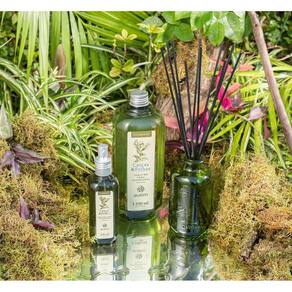 O kit contém: 1 Perfume Para Interiores 200ml 1 Perfume Para Interiores 1100ml 1 Frasco para Difusor Verde 250ml 1 Varetas Pretas 12 unidades 1 Essência para Difusor de varetas 210ml