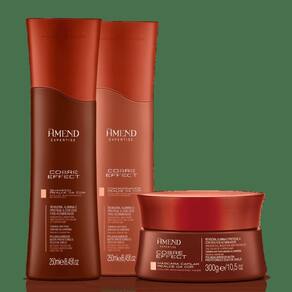 Kit Amend Cobre Effect Realce da Cor Triplo 3 Produtos Kit com shampoo, condicionador e máscara para cabelos acobreados. Amend Cobre Effect Realce da Cor Triplo mantém a cor vibrante e com brilho, garantindo o toque macio. Ideal para quem quer aumentar o tempo entre retoques no salão.