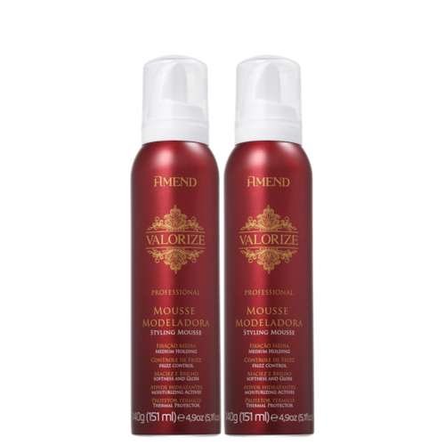 O Kit Amend Valorize Mousse traz dois produtos que criam uma camada flexível em torno do fio, altamente resistente à umidade, e que ajuda no controle do volume. Além disso, contém proteção térmica e ativos hidratantes para garantir uma aparência saudável ao visual.