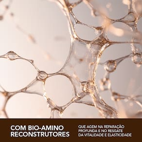 Age no interior da fibra capilar danificada. Com Bio-Amino Reconstrutores* que reparam danos, reconstroem as áreas fragilizadas e aumentam a resistência dos fios à quebra. Protege os cabelos de danos futuros