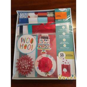 Este kit de sacolas de presente da American Greetings oferece uma solução completa para embrulhos estilosos e personalizados. Com 4 sacolas grandes e 4 médias, oferece opções para presentes de diferentes tamanhos. Os 10 adesivos autocolantes inclusos permitem adicionar um toque decorativo único a cada sacola, fazendo seus presentes se destacarem.