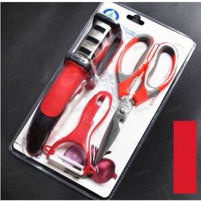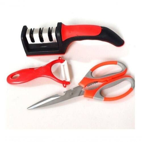 Kit Amolador/tesoura/descascador Afiador De Facas Em Aço Ino Com a tecnologia de aço de tungstênio, transforma o tradicional de um lado para o simultaneamente de ambos os lados para melhorar significativamente a velocidade de afiação. O design de ângulo exclusivo torna os cutelos retificados mais afiados e duráveis. Nosso produto é simples e fácil de usar, não precisa de água e luz, e indispensável para os modernos suprimentos de cozinha de família.