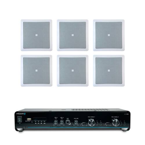 O sistema é complementado por seis caixas acústicas circulares de embutir. Estas arandelas utilizam um design coaxial (woofer e tweeter integrados) que assegura uma excelente distribuição do áudio em 360 graus. Elas proporcionam uma reprodução sonora clara, equilibrada e detalhada, sendo ideais para música de fundo. Este conjunto é perfeito para projetos que exigem ampla cobertura sonora e uma instalação de alto padrão e visual limpo.