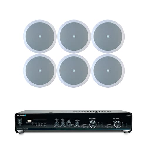 Este kit oferece uma solução poderosa e completa para a sonorização de múltiplos ambientes, combinando um amplificador compacto de alto desempenho com seis pontos de áudio de alta qualidade para instalação no teto. O coração do sistema é o Amplificador Estéreo Slim, que possui uma potência ideal para sonorizar áreas médias e grandes com clareza. Ele é projetado para ser discreto e oferece conectividade sem fio avançada para streaming de áudio, além de entradas USB/SD, rádio FM e entrada auxiliar, proporcionando flexibilidade total na escolha da fonte sonora.