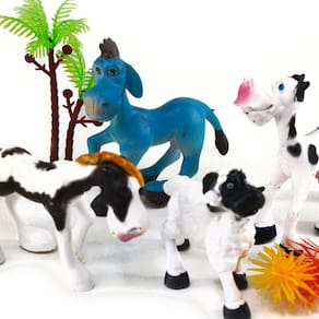 KIT Animais de Plástico 07 Peças Fazenda Kit Animais Fazenda 7 Peças - Ideal para a diversão das crianças. - Estimula a imaginação da criança. - Produto feito de plástico resistente. - Contém 2 árvores.;\nEspecificações:\nMarca : ARK\nTipo de material : Plástico\nCores ou Estampa : Modelos\nDimensões do Produto : 25 X 17 X 3,5 CM\nDimensões da Embalagem : 25 X 17 X 3,5 CM\nPeso Bruto (Gramas) : 0.180 Marca: Não Informado