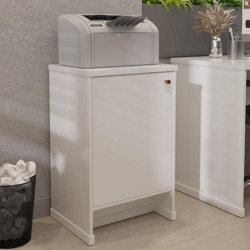 Estrutura em MDP, tampo em 25 mm, 1 porta articulada com dobradiças metálicas, 1 prateleira interna, puxador em ABS e pés ripado em MDP com sapatas plásticas.