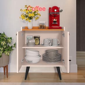 O Aparador Baden conta com uma adega para 6 garrafas e duas prateleiras internas, sendo ideal para montar um charmoso cantinho do café ou bar.