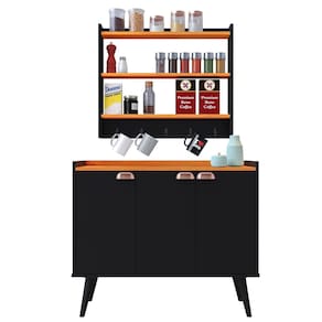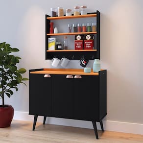 Kit Aparador Buffet Organizador Prateleira Interna Truzzi Armário Parede Porta Condimentos Cozinha Amélia - Preto/Cinamomo - RPM Móveis - Preto