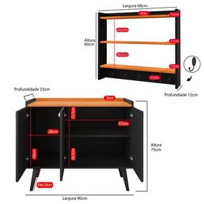 Já o Armário Amélia dispõe de um design moderno, possuí 2 prateleiras ideais para acomodar condimentos e itens de uso diário na cozinha. Seus ganchos são essenciais na organização de canecas, panos de pratos e muito mais peças.
