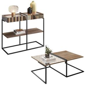 Kit Aparador E Mesa De Centro Aurum DHom, é repleta de sofisticação e elegância. Estrutura em MDP de 15 mm, pintura eletrostática (epóxi) e acabamento em BP e este super material ainda viabiliza valores mais naturais em seu visual que similiarizam aos desenhos de madeiras naturais. A mesa de centro conta com uma parte do tampo espelhada, e amplo espaço para acomodar objetos decorativos e pés metálicos com proteção antioxidante. O aparador é composto por uma prateleira, espelhos em todos os lados superiores e no tampo, e acompanha pés metálicos com proteção antioxidante. Suporta até 20 kg. É uma escolha versátil para compor sua sala de estar. Estes móveis chegarão na sua casa separado em 04 volumes.