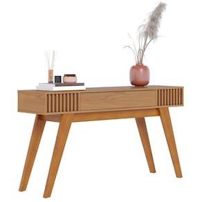Pés em madeira maciça angulados, estilo retrô.