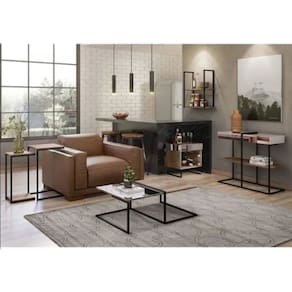O Kit de Móveis com Design Industrial para Sala além disso, sua versatilidade permite que seja utilizado em diversos ambientes. Com acabamento visual que se assemelha a madeiras naturais e pés e suportes estruturais em metal antioxidante, este conjunto adiciona um toque de sofisticação a qualquer espaço.