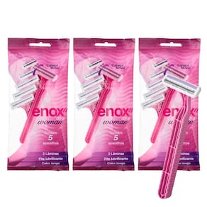 - 03 Pacotes de Aparelho de Depilar Descartável Enox GT-2 Woman Cód.1757. Cada Pacote vem com 5 unidades de Aparelho de Depilação.