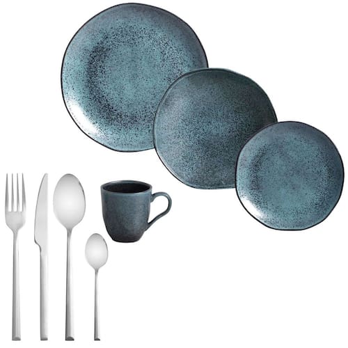 Kit Aparelho de Jantar 16 Peças Stoneware Orgânico Petroleum Porto Brasil + Faqueiro Oslo 16 Peças em Aço Inox da Wolff