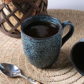 As peças em Stoneware apresentam formas orgânicas e acabamento na cor Petroleum, um tom profundo e sofisticado que valoriza a mesa com personalidade e elegância.