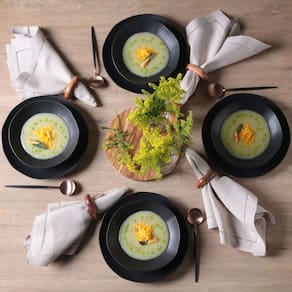Eleve o estilo da sua mesa com o Kit Aparelho de Jantar 16 Peças Stoneware Orgânico Preto Matte Porto Brasil + Faqueiro Oslo 16 Peças em Aço Inox Wolff, um conjunto que combina design autoral, modernidade e funcionalidade.
