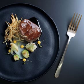 A textura suave e a paleta neutra valorizam a apresentação dos pratos e transformam cada refeição em uma experiência estética única.