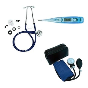 -Conteúdo Do Kit: 01- Esfigmomanômetro 01- Estetoscópio Rappaport Duplo 01- Termômetro Digital Axilar Garantia de 1 ano.
