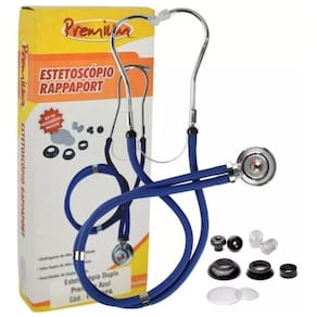 Estetoscópio Rappaport Premium: O Estetoscópio Rappaport Premium é indicado para a ausculta cardio-respiratória. Ele é completo, com tubo duplo para ausculta mais precisa e inclui olivas e diafragmas para conversão em diferentes formas de uso. Adulto e Pediátrico; Inclui Olivas e Diafragmas para conversão em diferentes formas de uso; Tubo Duplo para ausculta mais precisa; Produzido com os materiais mais nobres. Verificado e aprovado pelo INMETRO. Código Anvisa: 80275310063