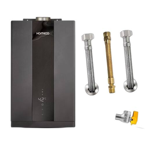Kit Aquecedor de Água Komeco KO21L Home GLP Preto + Assessórios Ligação a gás Komeco M1/2" F1/2" 40cm