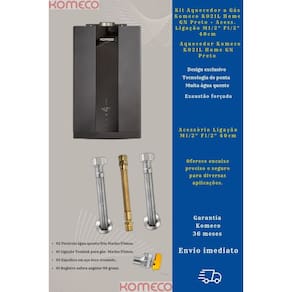 Kit Aquecedor Komeco KO21L Home GN Preto + Acessórios Ligação a gás Komeco M1/2" F1/2" 40cm