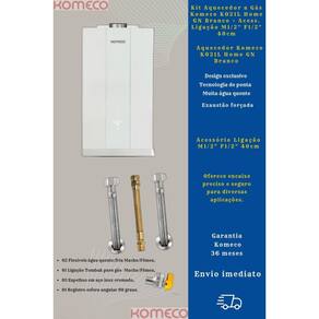 Kit Aquecedor de Água Komeco KO21L Home GN Branco + Acessórios Ligação a gás Komeco M1/2" F1/2" 40cm