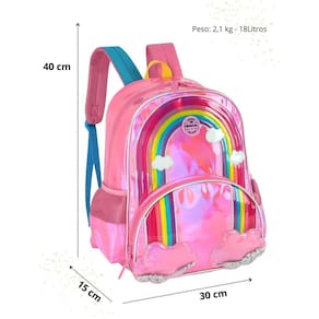 Mochila com costas: Confeccionada em poliéster fechamento em zíper puxadores personalizados compartimentos espaçosos 2 bolsos laterais para garrafa possui alça de mão design exclusivo etiqueta de identificação na parte traseira Medidas aproximadas: Altura: 40 cm largura: 15 cm comprimento: 30 cm