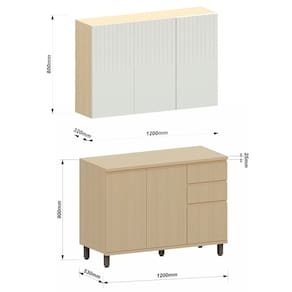 • Largura: Armário: 120 cm; Balcão: 120 cm