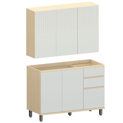 • 1 x Balcão de Pia para Cozinha 120 cm 3 Portas 2 Gavetas Aurora
