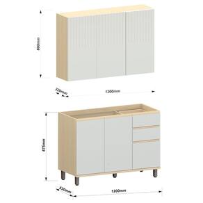 • Largura: Armário: 120 cm; Balcão: 120 cm