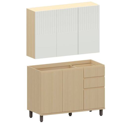 • 1 x Balcão de Pia para Cozinha 120 cm 3 Portas 2 Gavetas Aurora