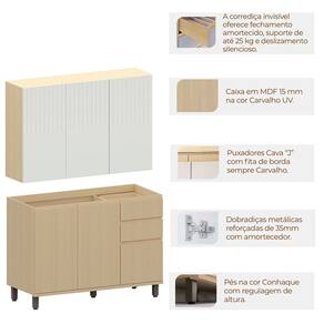Característica do Balcão de Pia 120 cm 3 Portas 2 Gavetas Aurora: