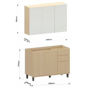 • Largura: Armário: 120 cm; Balcão: 120 cm