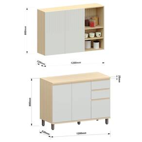 • 1 x Balcão para Cozinha 120 cm 3 Portas 2 Gavetas Aurora