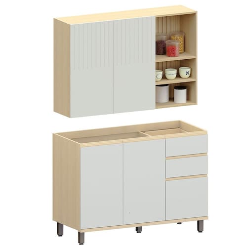 • 1 x Balcão de Pia para Cozinha 120 cm 3 Portas 2 Gavetas Aurora