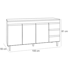 Dimensões do Balcão de Pia Sem Tampo 160 cm 3 Portas 3 Gavetas Adriana: