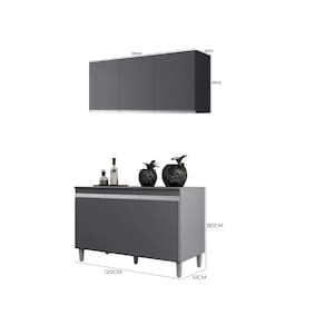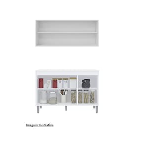 Características: Desenvolvido 100% em MDP Acabamento em pintura U.V Dobradiças metálicas Puxadores embutidos Corrediças metálicas Pés em PVC ACOMPANHA TAMPO MDP Dimensões: Armário Andréia Largura: 120 cm Altura: 55 cm Profundidade: 32 cm