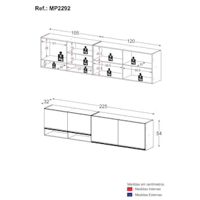 Dimensões do Produto Montado - Altura: 54cm | Largura: 225cm | Profundidade: 32cm