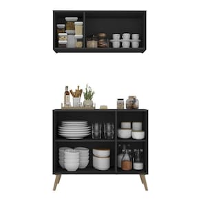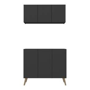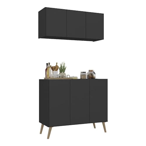 Kit Armário Cozinha Aéreo Balcão 3 Portas Retrô Mp2168 Preto/natural