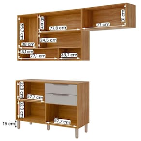 Estruturada em MDF, conta com 6 portas, 2 gavetas amplas com corrediças telescópicas e prateleiras para organizar tudo.