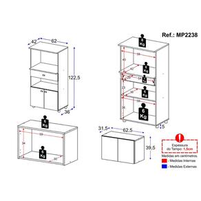 Balcão - Altura: 122,5cm | Largura: 62cm | Profundidade: 42cm