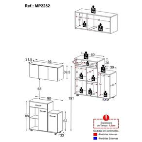 Fabricado em MDP com acabamento acetinado (cerca de 20% de brilho), este conjunto garante durabilidade e resistência. O armário aéreo de 3 portas facilita o acesso aos objetos guardados, tornando o dia a dia na cozinha muito mais prático.