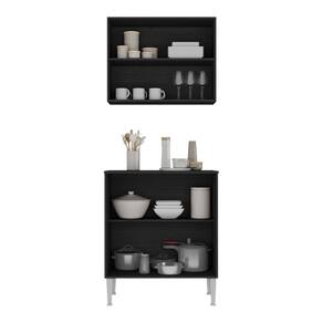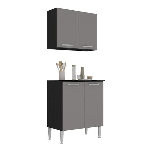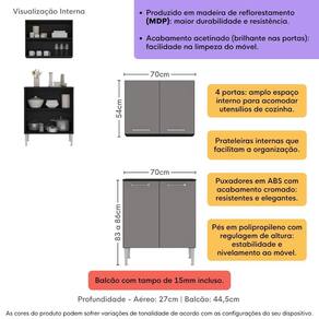 Kit Armário de Cozinha Aéreo com Balcão 70cm 4 Portas Pequim Multimóveis MP2380 - Preto | Cinza