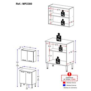 - Balcão com tampo que suporta até 11kg (não é compatível com Cooktop devido à profundidade).